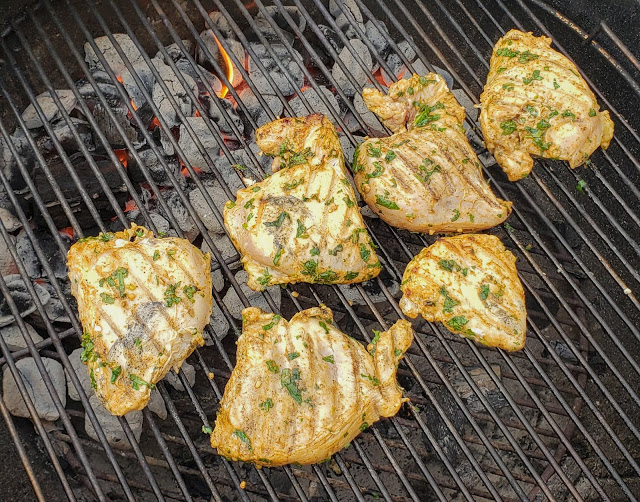 Trim the rib meat, then pound each breast to an approximately even thickness. Place all in a large gallon-size bag and pour in the marinade. Seal the bag, mix the bag so the marinade covers everything, then put it in the fridge for 1-12 hours. More is better. You can go less, but you’ll regret your choices.