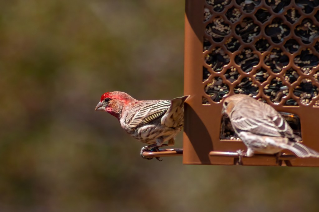 Since it’s springtime in my backyard, Mr. House Finch also brought along Mrs. House Finch, who was kind enough to also pose for a photo: